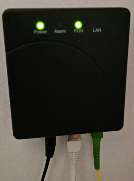 Dieser ONT wird benötigt, um das optische Glasfasersignal in ein elektrisches Signal (auf Kupfer) umzuwandeln.